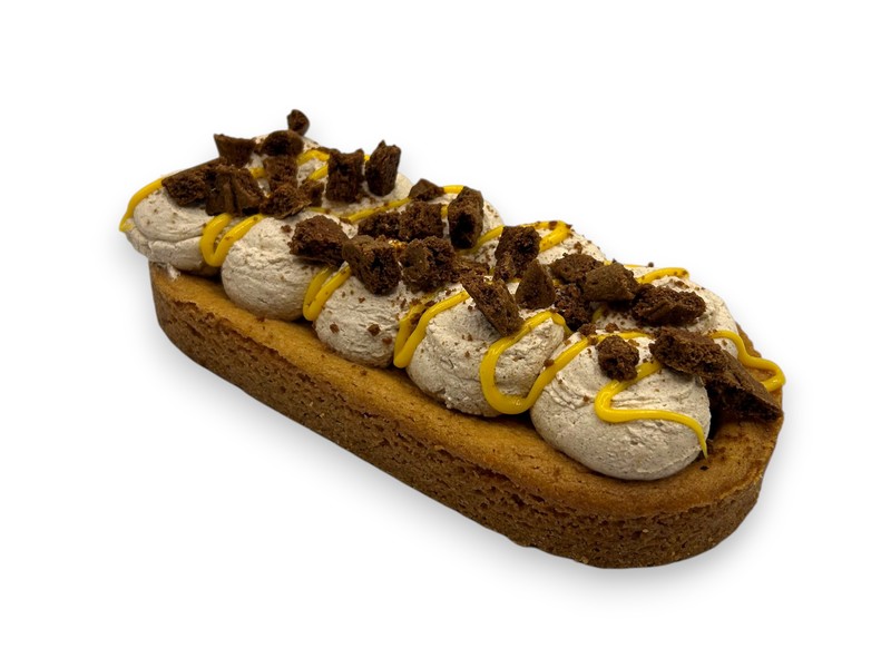 Sloffenbodem met speculaas bavaroise. Gedecoreerd met advocaat en stukjes speculaas.